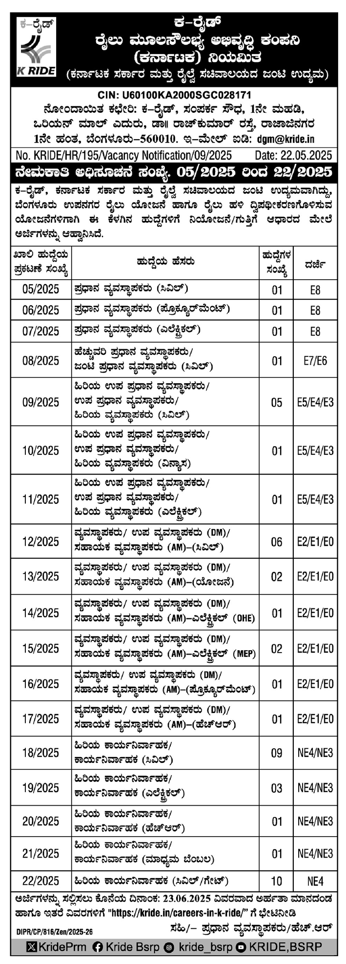 Organization Name: Rail Infrastructure Development Company ( Karnataka ) Limited